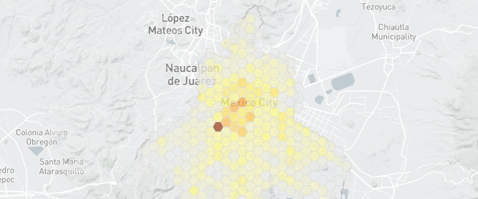 El siguiente mapa muestra las zonas de concentración de incidentes