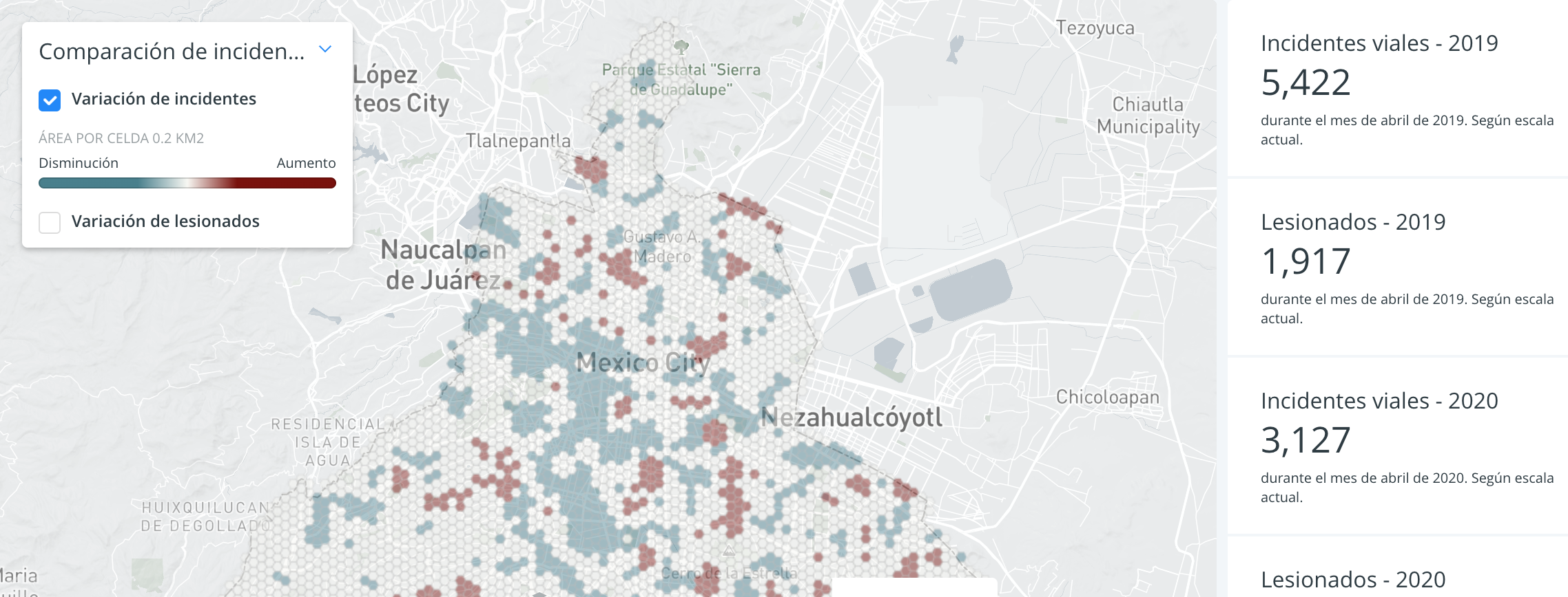 viales en la Ciudad de México durante el mismo periodo comprendido